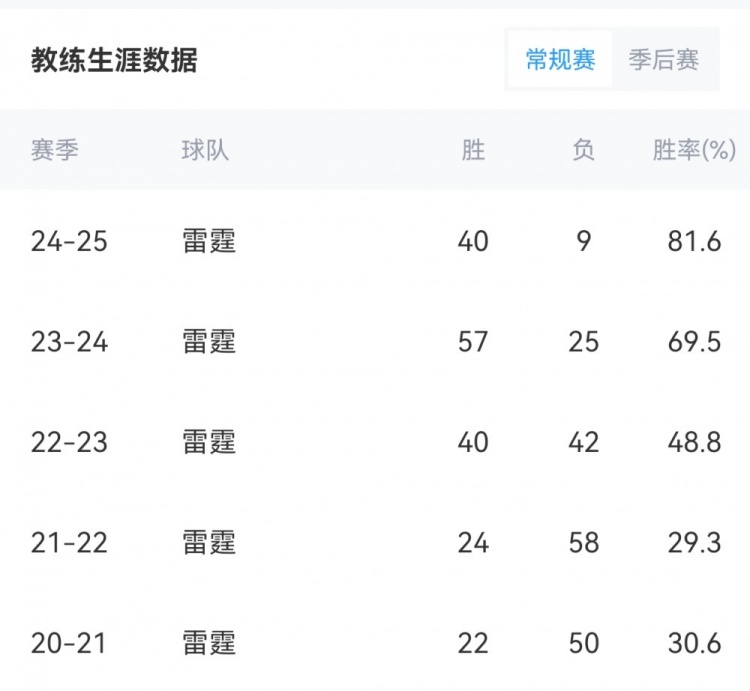 相關(guān)新聞>>>頭兩季僅30%勝率!雷霆主帥戴格諾特執(zhí)教勝率來(lái)到50%