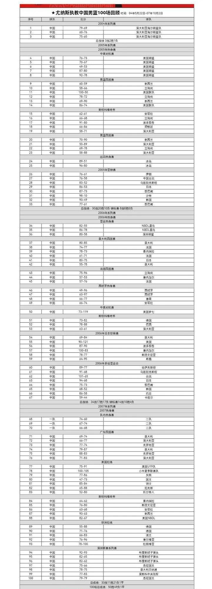 這些相對封閉的訓練其實只是一次集訓中的上半場。在封閉訓練以后,我們還會有相對開放的對外拉練。尤其是在08奧運周期,這樣以歐美球隊為主的對外拉練,在三年里的正式比賽高達100場。