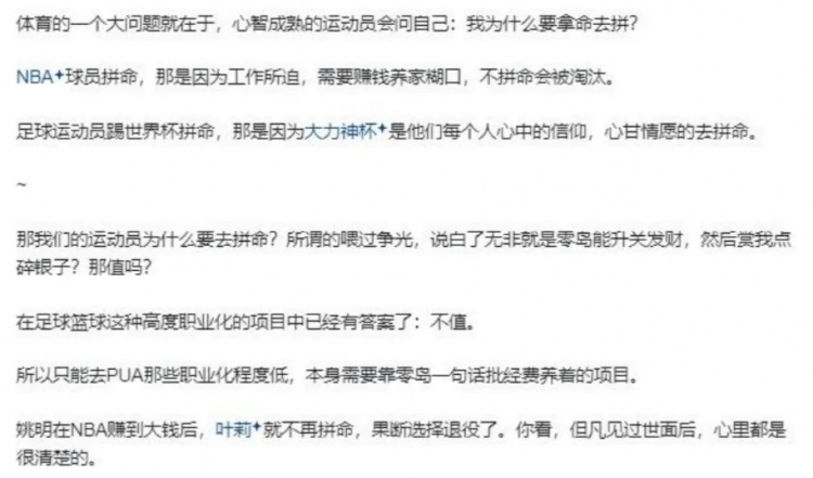前面我說的所有觀點都是在籃球范圍內的解答,接下來我會就一些“反集訓論”的代表性觀點做出具體解答。