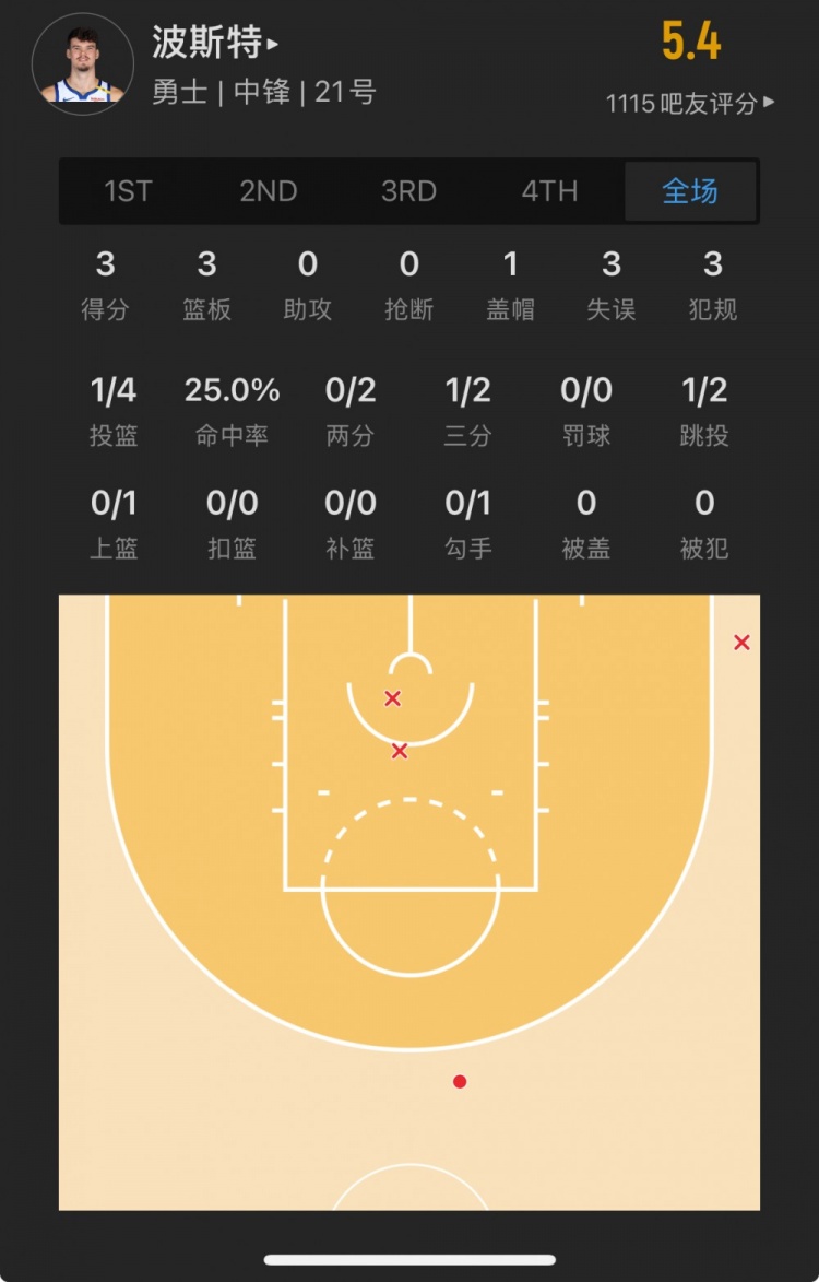 勇士52號秀 昆滕-波斯特 登場14.9分鐘