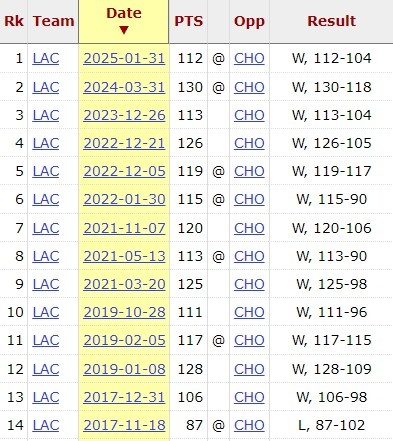 此役獲勝后,快船對黃蜂已取得14連勝,上次輸球還是在2017年。