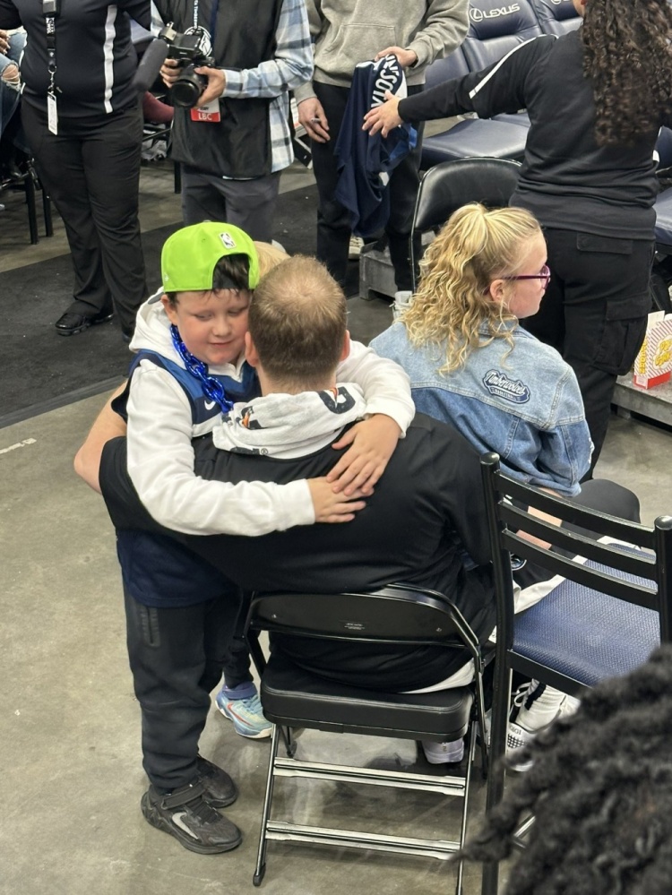 本場比賽,森林狼老將喬·英格爾斯12歲的自閉癥兒子雅各布,在家人的陪同下來到了現(xiàn)場觀看父親的比賽。在家人的支持下喬-英格爾斯今晚首發(fā)出戰(zhàn)六分鐘,盡管英格爾斯未能得分,但這個(gè)夜晚的意義遠(yuǎn)非技術(shù)統(tǒng)計(jì)所能體現(xiàn)。