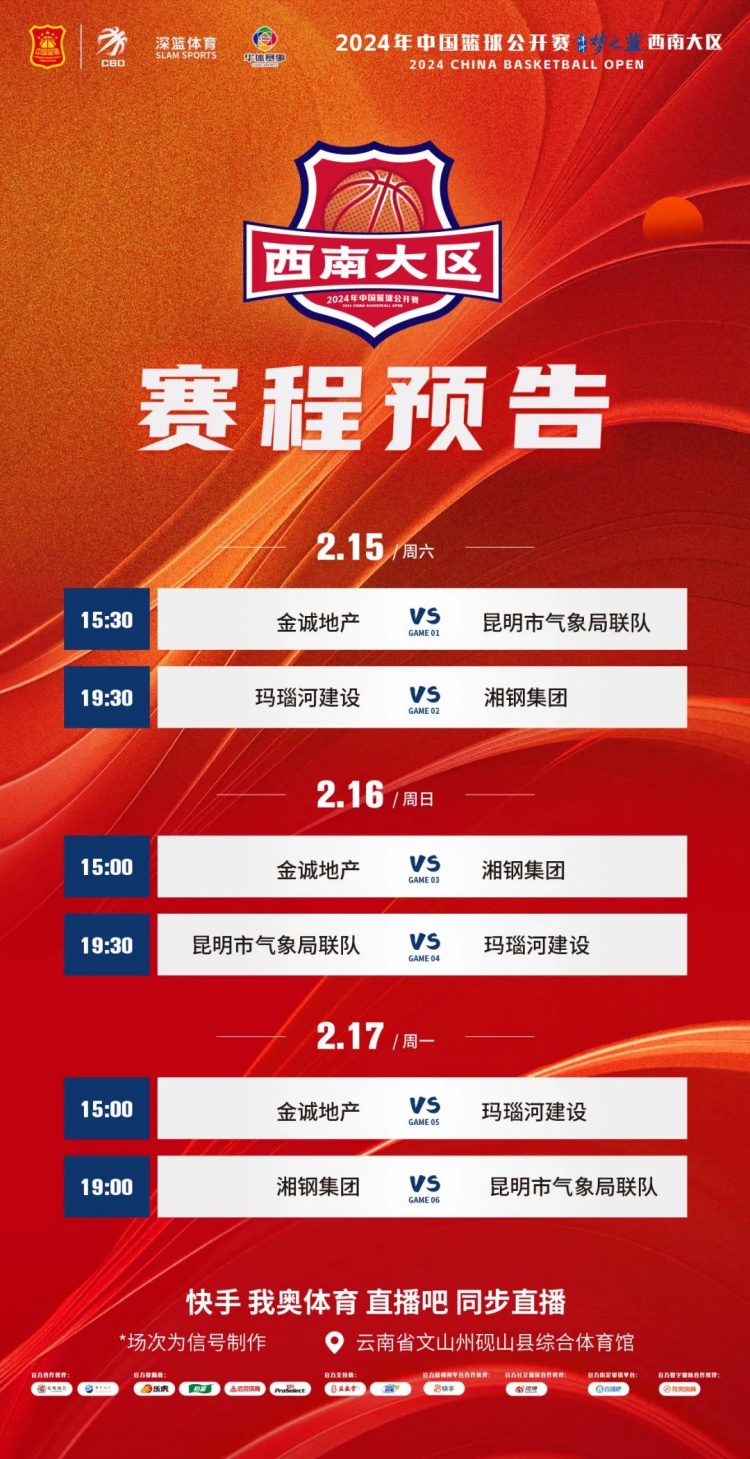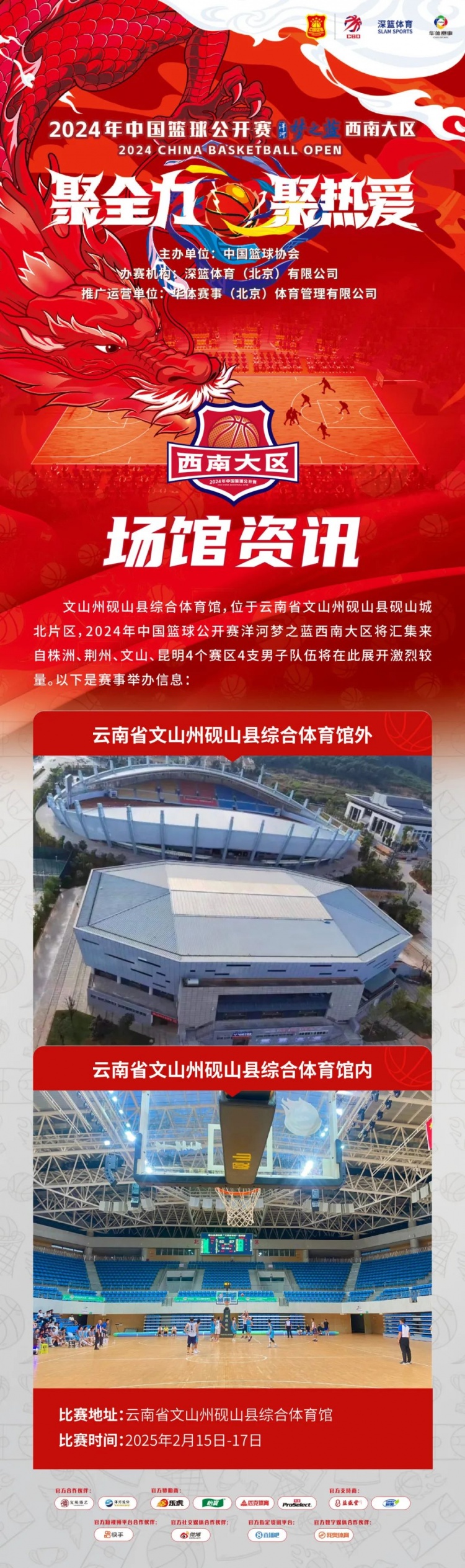 2月15日-17日,2024年中國籃球公開賽洋河夢之藍(lán)西南大區(qū)賽將在云南省文山州硯山縣綜合體育館舉辦,來自西南賽區(qū)各省市的4支男籃隊(duì)伍將在文山硯山激烈爭奪通往全國總決賽的入場劵。新年伊始,齊聚文山,誰能在這場激烈競爭中突出重圍,捧起通過全國總決賽的希望之鑰,讓我們拭目以待!