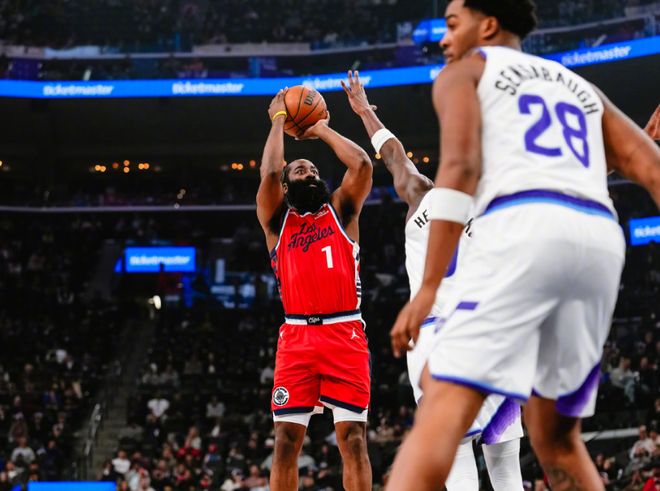 - 小卡45+7末節(jié)20分快船大勝爵士奪6連勝 哈登20+7李凱爾22+8