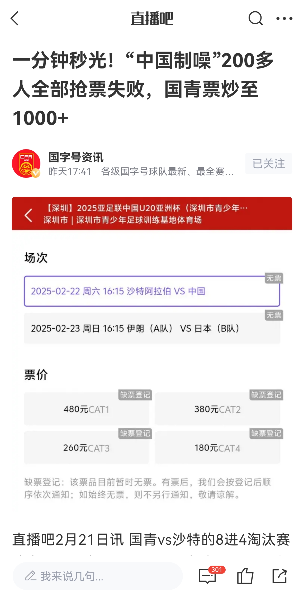 180賣(mài)2000!?國(guó)青賽前現(xiàn)場(chǎng)空座不少,此前開(kāi)票1分鐘內(nèi)秒售罄