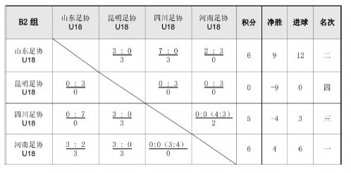 小組賽最后一輪,由于對手昆明足協(xié)U18隊棄權(quán),河南隊憑借對陣山東的勝負關(guān)系優(yōu)勢,力壓對手以小組頭名的成績進入到了接下來的排位賽。