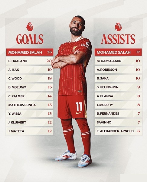 薩拉赫領(lǐng)跑英超射手榜和助攻榜,斯洛特不僅將帶來聯(lián)賽冠軍,還有可能為利物浦帶來一位金球獎得主。