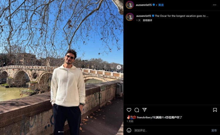 昨天,胡梅爾斯曬出自己在羅馬游玩的照片,由于正值奧斯卡頒獎(jiǎng)時(shí)間,他配文:奧斯卡最長(zhǎng)假期獎(jiǎng)?lì)C發(fā)給......。不過(guò),由于在對(duì)陣科莫的比賽中,胡梅爾斯替補(bǔ)未出場(chǎng)。因此,有網(wǎng)友認(rèn)為胡梅爾斯的配文是在暗諷拉涅利沒(méi)給自己出場(chǎng)機(jī)會(huì)。