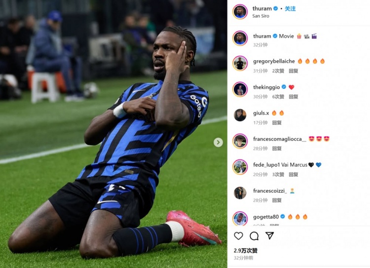 進(jìn)球功臣小圖拉姆則曬出自己的滑跪慶祝照,并配文:“電影時(shí)刻!”