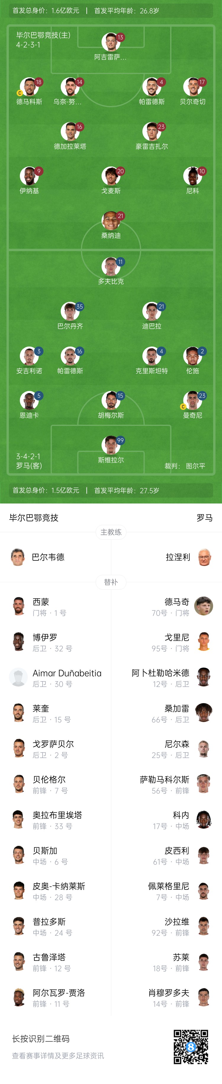 羅馬vs畢巴首發(fā):迪巴拉、胡梅爾斯先發(fā),尼科-威廉姆斯出戰(zhàn)