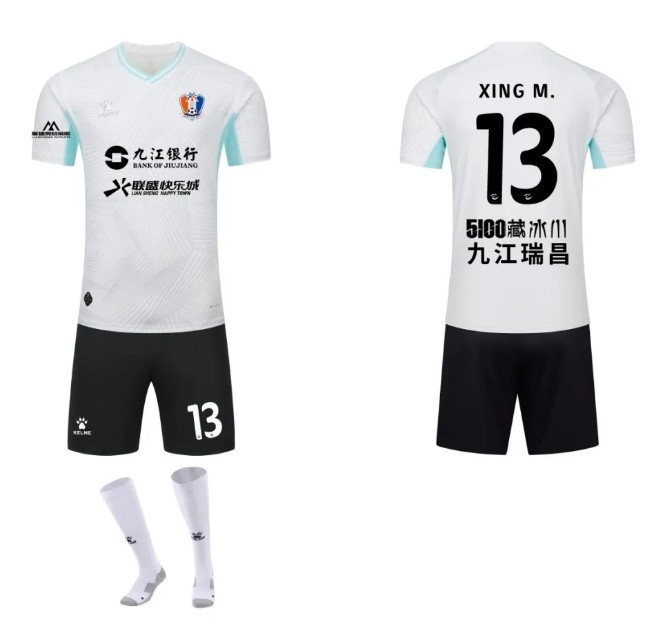 第二客場(chǎng)戰(zhàn)袍以皓月白為主色調(diào),搭配淺藍(lán)色細(xì)節(jié)及黑色比賽短褲,簡(jiǎn)潔大氣,沉穩(wěn)中透露著鋒芒。球衣設(shè)計(jì)靈感來(lái)源于江西廬山著名的云霧景觀,寓意著球隊(duì)在客場(chǎng)比賽中披荊斬棘,乘風(fēng)破浪。