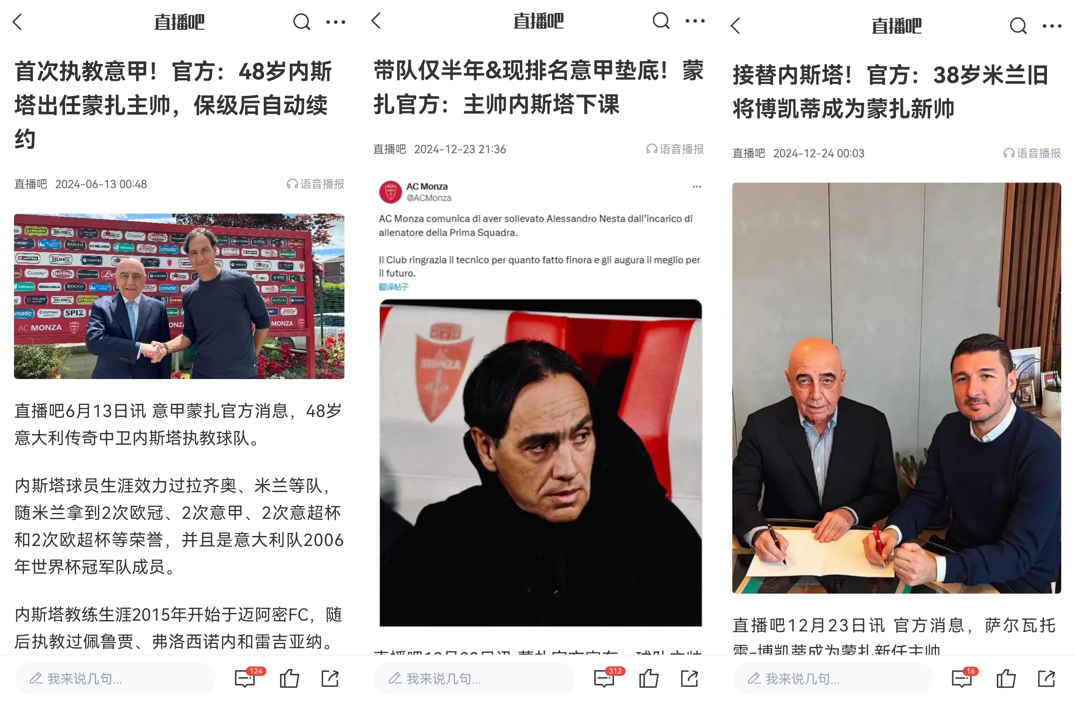 02月10日訊 意甲蒙扎官方宣布,解雇現(xiàn)主帥博凱蒂,再次任命48歲的內(nèi)斯塔執(zhí)教球隊。