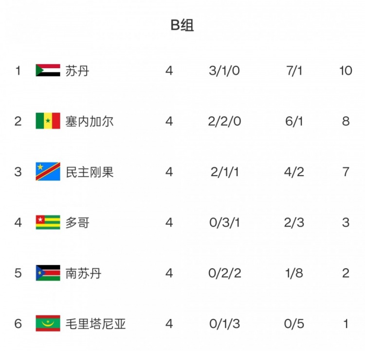 B組:馬內(nèi)領(lǐng)銜的塞內(nèi)加爾意外落后蘇丹,兩隊(duì)將于本周五迎來一次正面對決