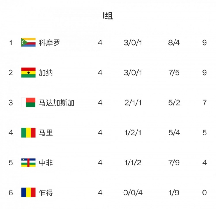 I組:“黑馬”科摩羅與加納同積9分,前者能否創(chuàng)造歷史首次突圍?