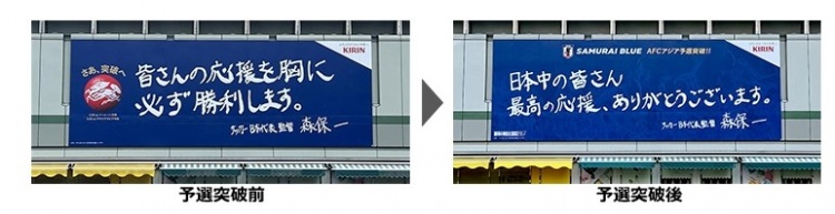 據(jù)日本足協(xié)報道,在日均人流量達(dá)300萬的日本新宿地鐵站南面出口的一處看板上,在世預(yù)賽前后都換上了森保一親筆寫下的感謝語。據(jù)悉,自3月16日到鎖定世界杯參賽資格前,看板內(nèi)容為:“我們會將大家的聲援銘記在心,與巴林一戰(zhàn)我們一定會取勝。”