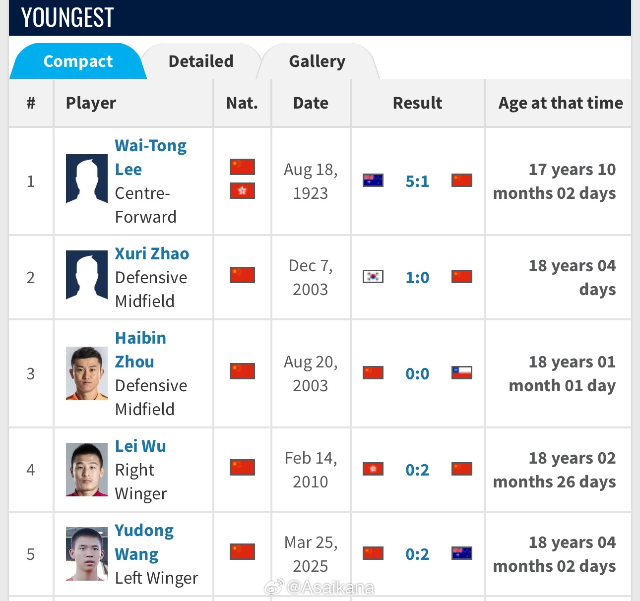 不算上古大神,王鈺棟在國(guó)足A級(jí)最年輕出場(chǎng)里排第四(18歲4個(gè)月)