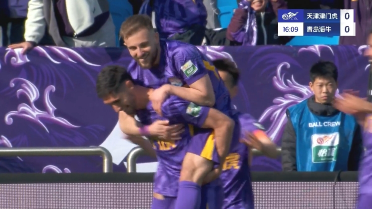 第16分鐘,基萊斯禁區(qū)內(nèi)回做,羅斯推射破門,津門虎1-0海牛