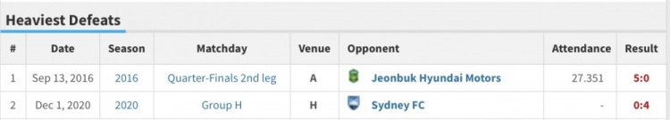 另外,海港隊(duì)史上還有另外一次0-4的失利。當(dāng)時(shí)是在2020年12月1日,海港在亞冠小組賽0-4不敵悉尼FC,不過當(dāng)時(shí)海港已經(jīng)提前兩輪出線。
