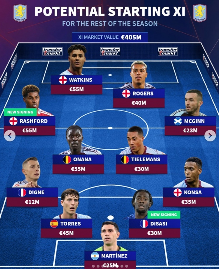 德轉(zhuǎn)預(yù)測(cè)維拉下半程首發(fā)陣:總身價(jià)4.05億歐