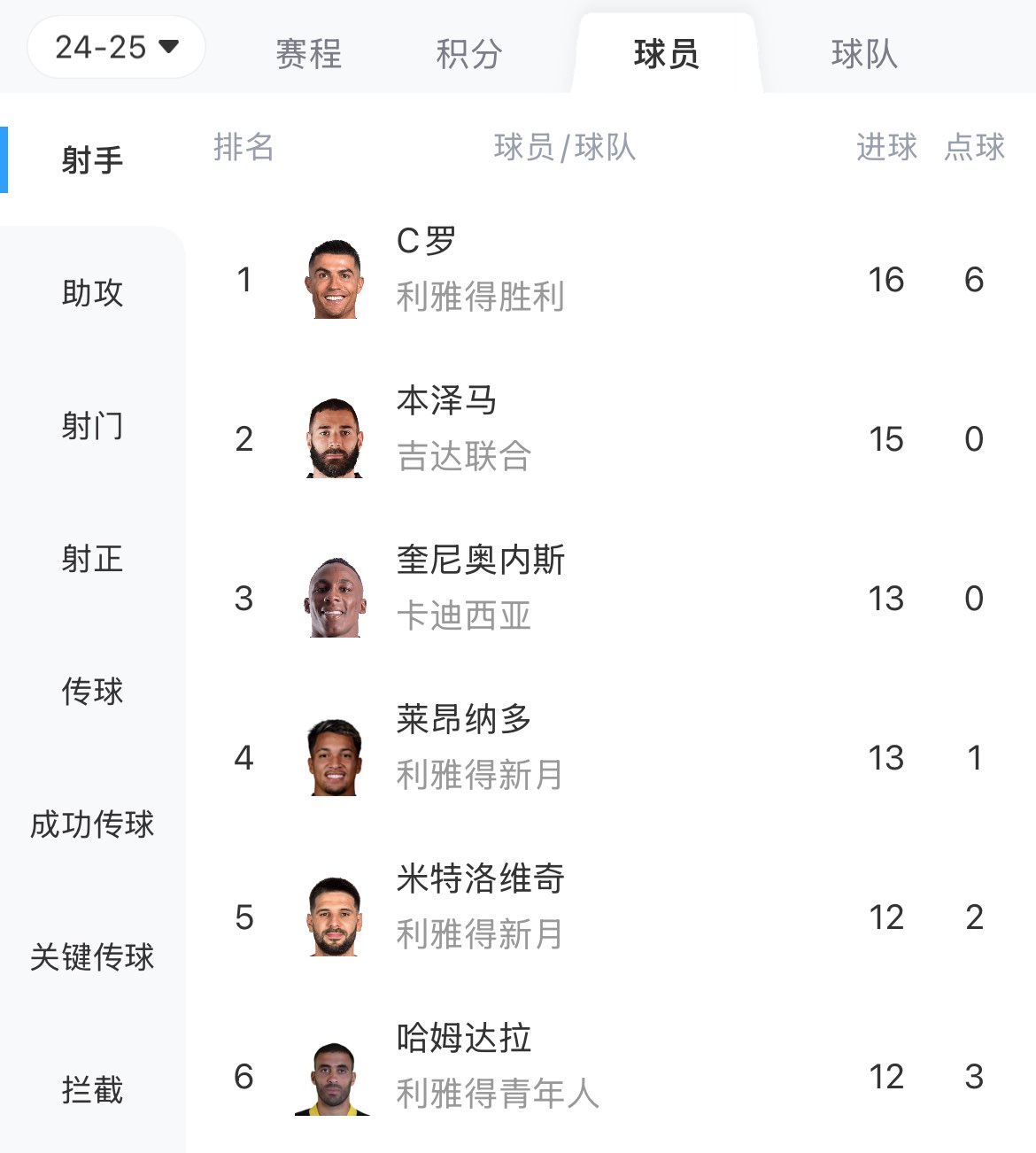 02月17日訊 本輪沙特聯(lián),本澤馬一射兩傳幫助吉達(dá)聯(lián)合4-1擊敗麥加統(tǒng)一,繼續(xù)占據(jù)積分榜榜首,本澤馬在沙特聯(lián)射手榜上也僅落后第一名C羅1球。