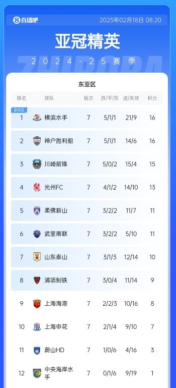 目前在積分榜上,上海申花隊2勝1平4負(fù)暫列亞冠精英聯(lián)賽東亞區(qū)第10位。