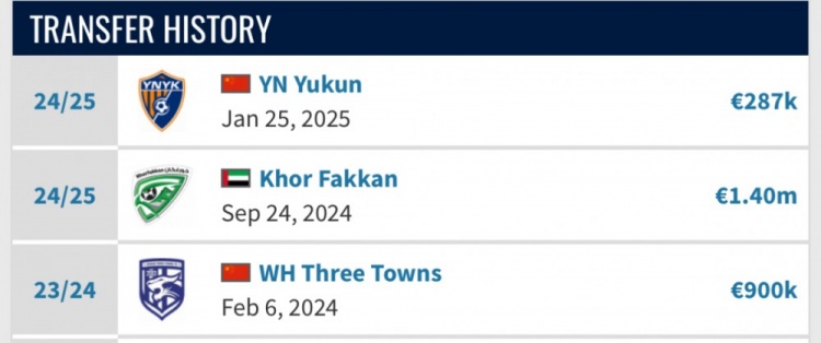 2024年年初,武漢三鎮(zhèn)以90萬(wàn)歐元的轉(zhuǎn)會(huì)費(fèi)引進(jìn)了佩德羅-恩里克。由于在武漢三鎮(zhèn)表現(xiàn)不俗,2024年夏天,武漢三鎮(zhèn)以140萬(wàn)歐元的價(jià)格將其賣給了阿聯(lián)酋的豪爾費(fèi)坎。效力豪爾費(fèi)坎半賽季后,佩德羅-恩里克重返中超聯(lián)賽,以28.7萬(wàn)歐元的轉(zhuǎn)會(huì)費(fèi)加盟升班馬云南玉昆。短短半個(gè)賽季,豪爾費(fèi)坎在佩德羅-恩里克身上的投資凈虧損超過(guò)了百萬(wàn)歐元。