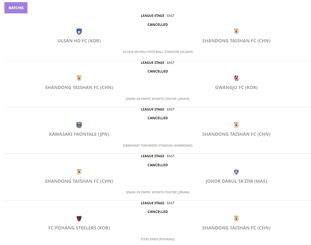 官方積分榜中,山東泰山的戰(zhàn)績已經(jīng)歸零。