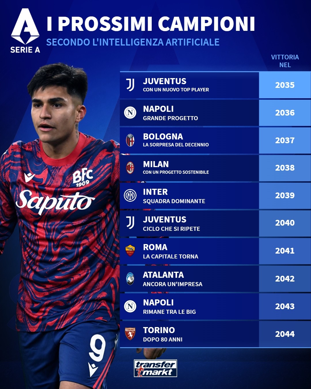 ChatGPT預測未來20年意甲:國米尤文4冠 米蘭3冠 博洛尼亞都靈1冠