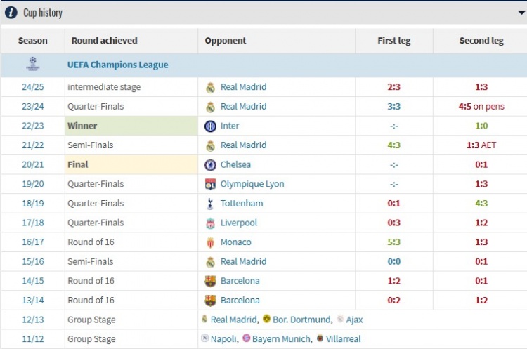 曼城歐冠改制后參賽14次,本賽季是時(shí)隔11個(gè)賽季再度無緣16強(qiáng)