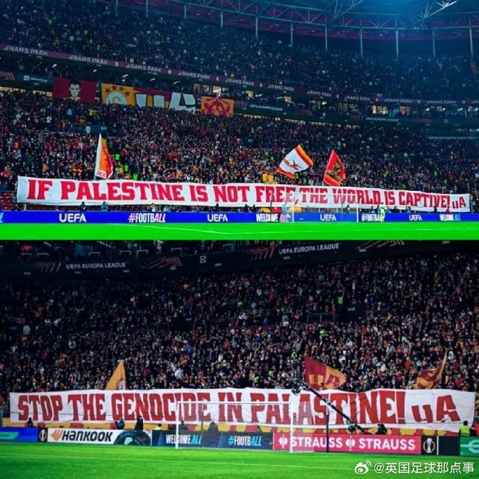 加拉塔薩雷球迷拉橫幅:感謝凱爾特人球迷對巴勒斯坦的堅定支持