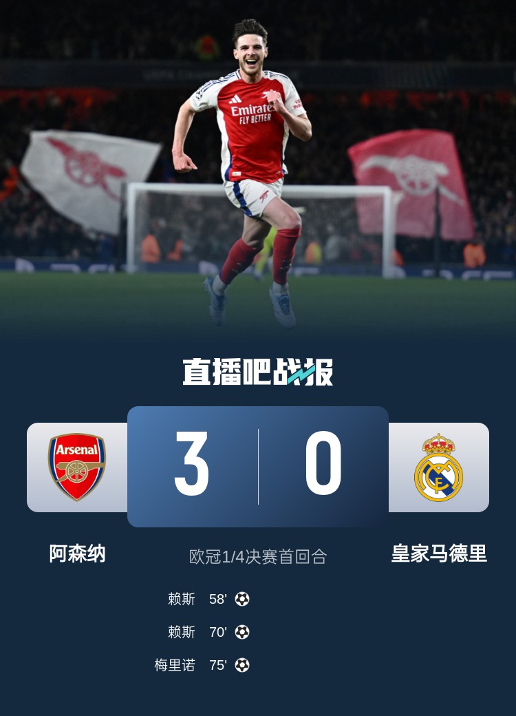 巴洛特利發(fā)泄不滿:有人不配看到成熟的我,而應(yīng)該看到16歲時(shí)的我 4月9日訊 巴洛特利在熱那亞難以獲得出場(chǎng)機(jī)會(huì),他疑似發(fā)文表示不滿。本周二巴洛特利在社媒發(fā)布了一張自己在更衣室內(nèi)的黑白照片,并表示:“這里有人不配看到成熟的我,而應(yīng)該看到16歲時(shí)叛逆的我。也許這樣他們就 2025/04/09 蘇東社媒盛贊賴斯:Bend like Beckham 4月9日訊 在今天凌晨進(jìn)行的歐冠1/4決賽首回合,阿森納主場(chǎng)3-0戰(zhàn)勝皇馬,其中賴斯大放異彩,打入了兩個(gè)任意球。賽后,蘇東在社媒盛贊了賴斯以及阿森納的表現(xiàn)。蘇東在社媒寫道:“Bend like Bec 2025/04/09 一口好奶!槍迷拍賴斯第2球:他不可能再進(jìn)的!進(jìn)球后其瘋狂慶祝