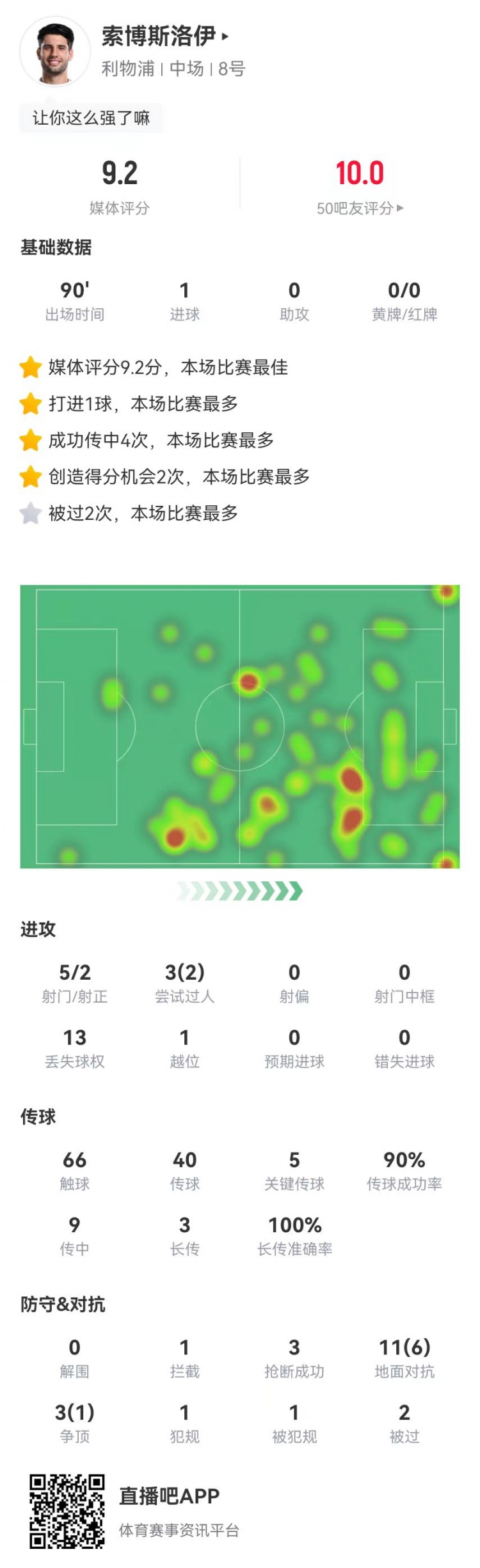 利物浦總比分3-1領先!索博斯洛伊單刀破門,布拉德利助攻 02月07日訊 聯(lián)賽杯半決賽,利物浦對陣熱刺。76分鐘,布拉德利助攻,索博斯洛伊單刀破門,利物浦總比分3-1領先熱刺。 2025/02/07 國米上次意甲單場凈輸3球,還是2019年5月1-4那不勒斯 2月7日訊 本輪意甲補賽,國米在客場0-3不敵佛羅倫薩。數(shù)據(jù)統(tǒng)計顯示,國米上次在意甲聯(lián)賽凈負3球,還是2019年5月19日1-4那不勒斯。 2025/02/07 12球8助攻!索博斯洛伊已為利物浦直接參與20球 2月7日訊 利物浦在本輪聯(lián)賽杯4-0領先熱刺,索博斯洛伊取得進球。數(shù)據(jù)統(tǒng)計顯示,索博斯洛伊已為利物浦直接參與20球,共計12球8助攻。 2025/02/07 521球!利物浦在聯(lián)賽杯進球數(shù)是歷史各隊最多 2月7日訊 利物浦在本輪聯(lián)賽杯次回合4-0領先熱刺,總比分4-1領先。數(shù)據(jù)統(tǒng)計顯示,利物浦在聯(lián)賽杯已經(jīng)打進521球,是歷史各隊最多。 2025/02/07 決賽要來了!范迪克頭球破門,麥卡利斯特助攻 02月07日訊 聯(lián)賽杯半決賽,利物浦對陣熱刺。80分鐘,麥卡利斯特開出角球,范迪克頭球破門,利物浦總比分4-1領先熱刺。 2025/02/07 費蘭30分鐘上演帽子戲法,為巴薩球員自08年埃托奧之后最快 2月7日訊 在本輪國王杯巴薩對陣瓦倫西亞的比賽中,費蘭用時半小時完成帽子戲法。據(jù)統(tǒng)計,這也是自08年埃托奧以來巴薩球員在各項賽事最快達成帽子戲法紀錄,埃托奧當時在西甲主場對陣阿爾梅里亞的比賽中28分鐘 2025/02/07 加克波本場數(shù)據(jù):1粒進球,4次關鍵傳球,5射2正 2月7日訊 在聯(lián)賽杯半決賽次回合利物浦對陣熱刺的比賽中,加克波表現(xiàn)不俗,以下為他在本場數(shù)據(jù):比賽時間82分鐘1粒進球5射2正2次過人1次成功1次中框1次失良機49次觸球4次關鍵傳球傳球成功率80.6% 2025/02/07 梅開二度!意甲官方:小基恩當選佛羅倫薩3-0國米全場最佳 2月7日訊 在意甲補賽佛羅倫薩3-0擊敗國米的比賽中,小基恩發(fā)揮出色。本場比賽小基恩梅開二度,5次射門4次射正,賽后他也當選意甲官方評選出的本場最佳球員。 2025/02/07 薩拉赫本場數(shù)據(jù):傳射建功+2關鍵傳球&3過人成功,評分8.9 2月7日訊 英聯(lián)杯半決賽次回合,利物浦對陣熱刺,薩拉赫首發(fā)出戰(zhàn),傳射建功,還送出2次關鍵傳球,3次過人成功,評分8.9。薩拉赫本場比賽數(shù)據(jù):進球1助攻1射門5射正4過人5過人成功3射偏1射中門框1丟失 2025/02/07 23球13助!拉菲尼亞本賽季各項賽事34次出場參與36球 2月7日訊 在本輪國王杯巴薩對陣瓦倫西亞的比賽中,拉菲尼亞已經(jīng)兩次送出助攻。據(jù)統(tǒng)計,拉菲尼亞本賽季各項賽事代表巴薩34次出場,已經(jīng)直接參與36粒進球,包括23球13助攻。 2025/02/07 范迪克自利物浦首秀以來打進26球,同期英超后衛(wèi)最多 2月7日訊 利物浦在本輪聯(lián)賽杯4-0領先熱刺,范迪克破門。數(shù)據(jù)統(tǒng)計顯示,自他在2018年1月完成利物浦首秀以來,范迪克各項賽事已經(jīng)打進26球,是同期英超后衛(wèi)最多。 2025/02/07 拉菲尼亞本場數(shù)據(jù):助攻雙響,3次關鍵傳球,2次射門未射正 2月7日訊 在本輪國王杯巴薩對陣瓦倫西亞的比賽中,拉菲尼亞助攻雙響,以下為他在本場數(shù)據(jù):比賽時間64分鐘2次助攻2射0正34次觸球3次關鍵傳球傳球成功率88.9%sofa評分7.6分 2025/02/07 佩德里本場1助攻+5成功長傳 10對抗9成功 4造犯規(guī)4搶斷 獲評8.2分 2月7日訊 巴薩在本輪國王杯5-0領先瓦倫西亞,佩德里本場數(shù)據(jù)如下:首發(fā)出戰(zhàn)64分鐘1助攻81觸球65傳球、60成功,成功率92%1關鍵傳球1傳中、0成功6長傳、5成功1創(chuàng)造重大機會1過人、1成功10 2025/02/07 全面!范迪克本場數(shù)據(jù):1進球1關鍵傳球2解圍1攔截,評分7.9 2月7日訊 英聯(lián)杯半決賽,利物浦4-0熱刺,范迪克首發(fā)出戰(zhàn),貢獻1粒進球,還有1次關鍵傳球,2次解圍,1次攔截,評分7.9。范迪克本場比賽數(shù)據(jù)如下:進球1助攻0射門1射正1丟失球權5觸球75傳球68關 2025/02/07 利物浦15次打進聯(lián)賽杯決賽創(chuàng)賽事紀錄,此前10次最終問鼎 2月7日訊 在聯(lián)賽杯半決賽次回合,利物浦4-0大勝熱刺晉級決賽。據(jù)統(tǒng)計,這是利物浦第15次打進聯(lián)賽杯決賽,是賽事歷史最多。在此前比賽中利物浦拿下10次冠軍(1981年、1982年、1983年、1984 2025/02/07 小基恩:佛羅倫薩給了我機會,我希望能夠回報俱樂部 2月7日訊 在剛剛結束的意甲補賽中,佛羅倫薩3-0大勝國米,梅開二度的小基恩在賽后接受了DAZN的采訪。感覺怎么樣?“我們?yōu)楸荣愖龊昧顺浞值臏蕚?,這都要歸功于一直支持我的隊友,謝謝他們?!蹦阏业搅艘粋€ 2025/02/07 碾壓!利物浦4-0熱刺數(shù)據(jù):射門26-5,射正10-0,控球率64%-36% 2月7日訊 英聯(lián)杯半決賽次回合,利物浦4-0熱刺,總比分4-1晉級決賽。全場比賽數(shù)據(jù)如下(利物浦在前):射門26-5射正10-0進球機會5-0控球率64%-36%傳球成功率87%-78%犯規(guī)5-8角球 2025/02/07 索博本場1球+5關鍵傳球+2造良機 3成功長傳3搶斷 9.2分全場最高 2月7日訊 利物浦在本輪聯(lián)賽杯4-0擊敗熱刺,索博斯洛伊本場數(shù)據(jù)如下:首發(fā)踢滿全場1球66觸球40傳球、36成功,成功率90%5關鍵傳球9傳中、4成功3長傳、3成功2創(chuàng)造重大機會5射門、2射正3過人、 2025/02/07 完??!熱刺全場無一次射正,為球隊自2021年以來首次出現(xiàn) 2月7日訊 在聯(lián)賽